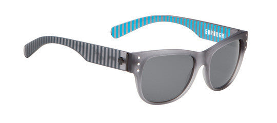 Grey crytal acetate compliments a dark black lens. Inside pattern is a light blue.