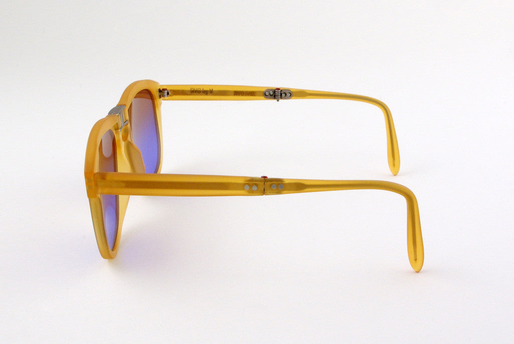 Are you a brilliant man who loves beautiful, technical, architectural gadgets? Are you a super dweeb who waits in line for the new iphone? (Don't worry, I did it too!) Then these are the glasses for YOU. The designer of RVS by V, Vidal, is obsessed with the original Steve McQueen folding Persols, and made these as a tribute to them. Every time people pick these up they are amazed with the complex engineering that went into making these wicked shades. Not only do they look good on, they fold into a neat little package which is sure to impress the ladies. Put them on your face, pull up a bar stool next to a fine peice of ass, and neatly fold up your shades into a George Jetson car briefcase of fun!