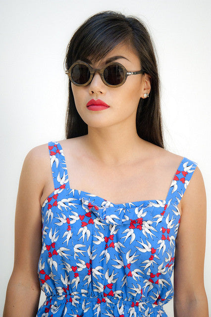 All of a sudden, circle glasses are like morning wood, they won't go away until you pay attention to them! Luckily for you, I happen to carry the best ones. Waiting for the Sun makes these wondrous shades out of bamboo and rosewood and are as light a summers breeze. Make sure you pick some up because if you don't follow trends no one will let you sit next to them at the lunch table. WAITING FOR THE SUN sunglasses dazzle me with their designers innovative use of raw natural materials. Their singular technical, graphic shapes stand alone from the rest of the eyewear world. Light as cumulous clouds, these literally flew off the shelves this summer. Waiting for the Sun epitomizes urban, casual chic. A special mix of vintage californian and laid back and french sophistication.